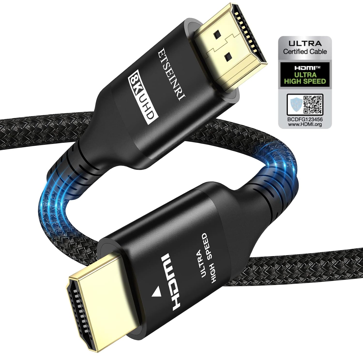 Blасk Frіdау - 60% оƒƒ 8K HDMI Cable 2.1 2M, Etseinri Certified HDMI Cable 6.6Ft 48Gbps Ultra High Speed HDMI 2.1 Cord 8K60Hz 4K120Hz eARC RTX 3090 HDR10 HDCP 2.2 2.3 for R-oku/F-ire/S-Ony/L-G/S-amsung, PS5, Xbox Series X