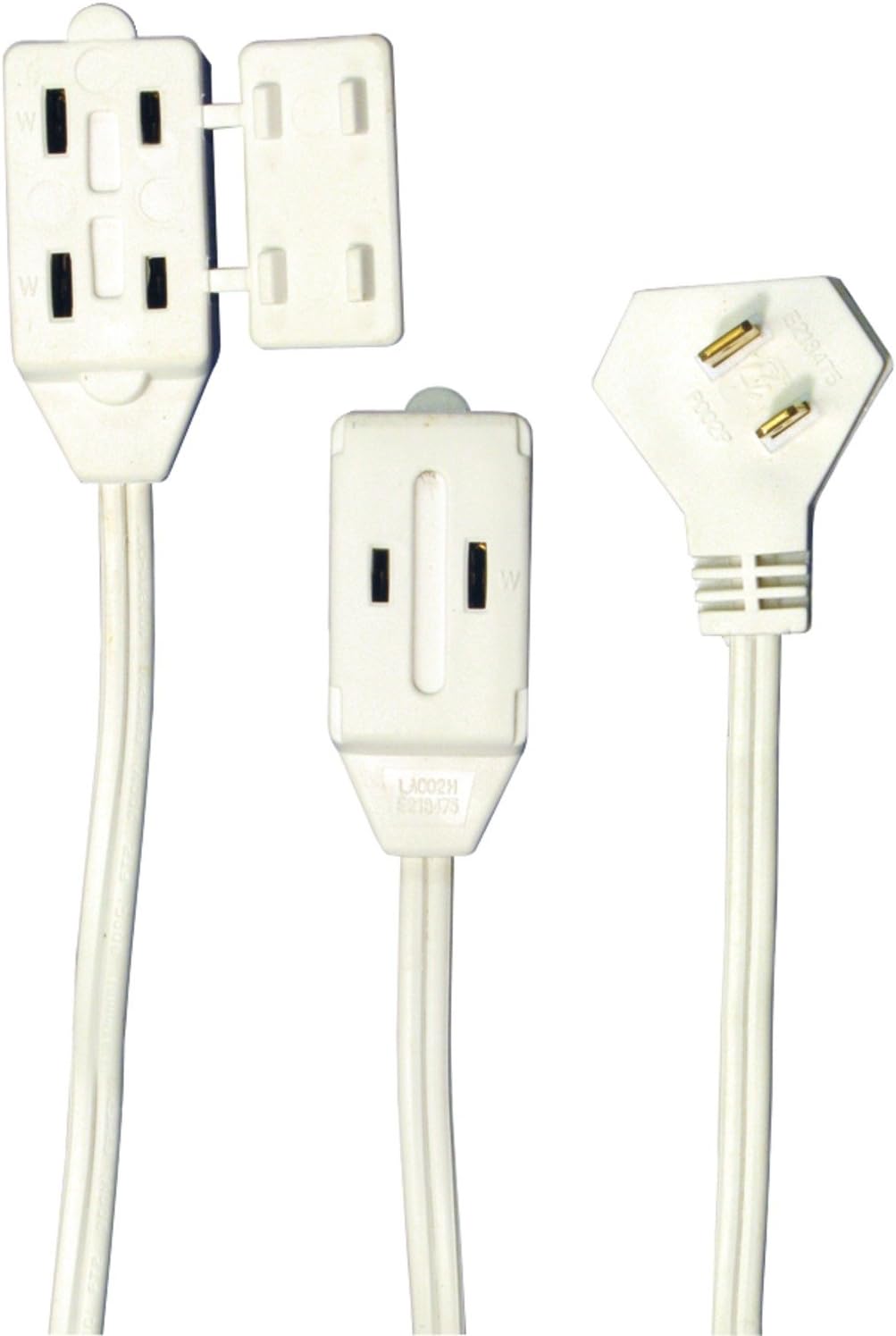 3 outlet indoor extension cord wall hugger design is ideal for tight spaces polarized plug outlets UL listed 6 ft. white